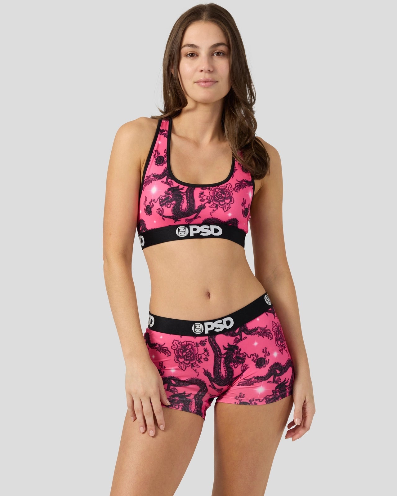 With a tattoo-inspired print. the Airbrushed Dragon Sports Bra is made from a silky poly blend and is breathable yet slightly compressive. bringing you the comfort and support you need for everything you get into.