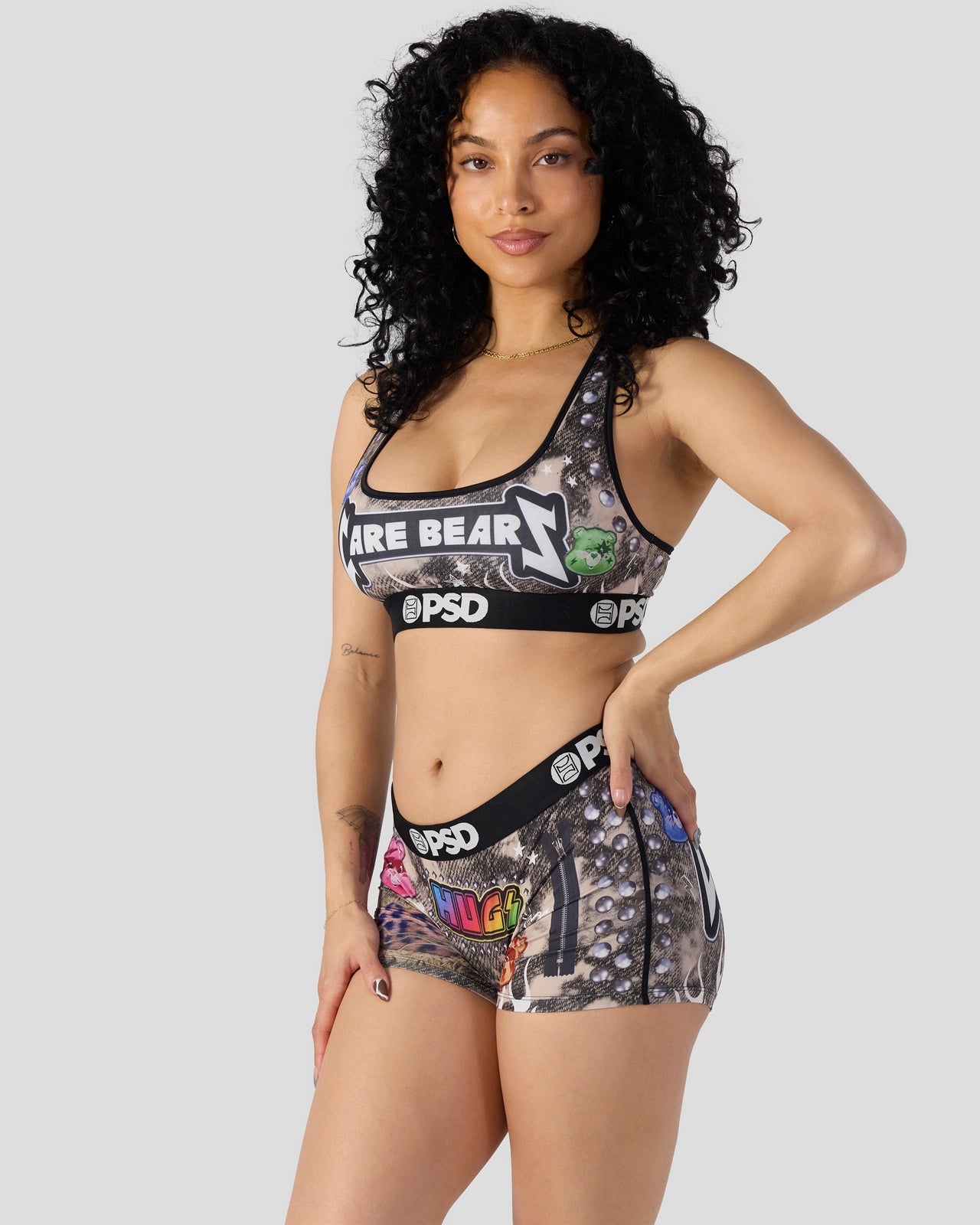 Care Bears go metal in this new look from Care Bears x PSD. The Headbanger Sports Bra is made from a silky poly blend with a comfortable full coverage. keep-you-in fit. The PSD boy shorts are perfect for everyday wear and working out.