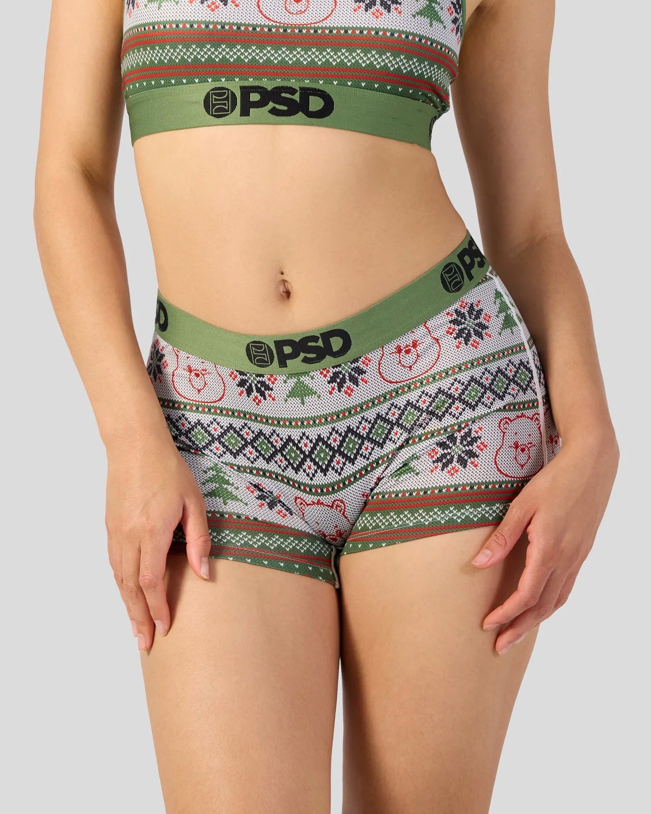 The holidays with a Care Bear twist. The Ugly Sweater Boy Short from the Care Bears x PSD is made from a silky poly blend with a comfortable full coverage. keep-you-in fit. The PSD boy shorts are perfect for everyday wear and working out.