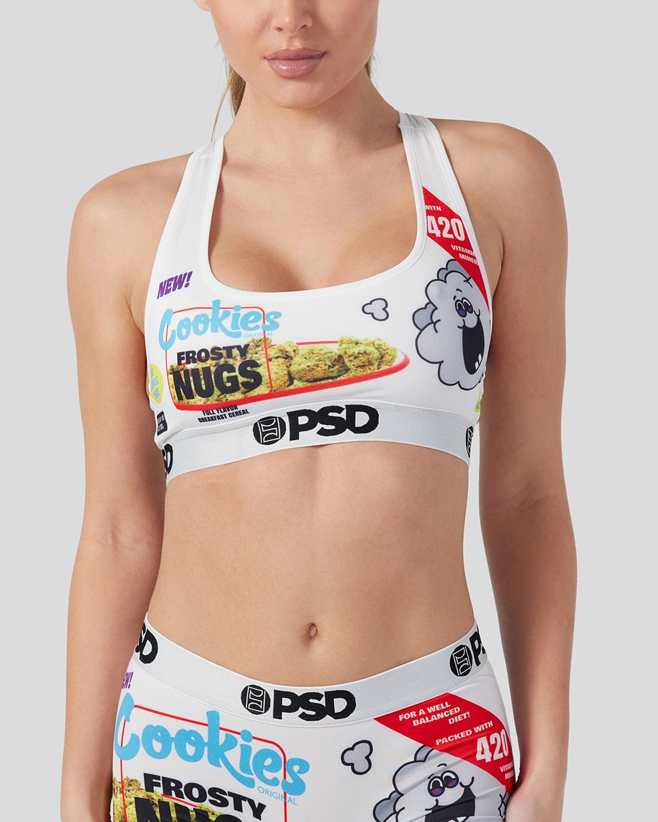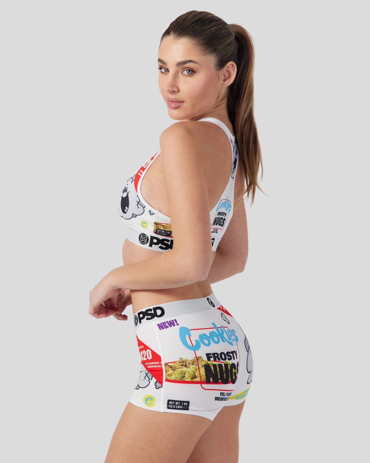 Like your favorite breakfast cereal but so much better. the newest drop from Cookies x PSD is full of earthy flavor. Made from a silky poly blend with a comfortable full coverage. keep-you-in fit. the Frosty Nugs boyshorts are perfect for everyday wear and working out.