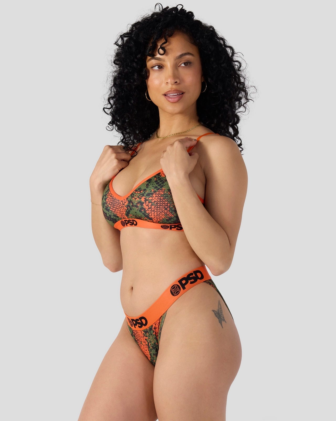 Slither your way into this new snakeskin-inspired look. With more coverage than a thong but less than a cheeky. the Green Snake Tanga is the best of both worlds. Made of our silky. soft-to-the-touch poly blend. it’s lightweight. breathable. and so easy to wear.