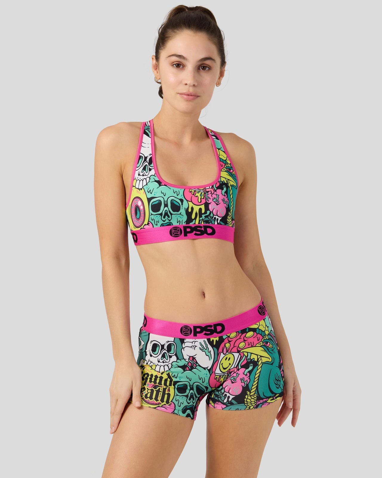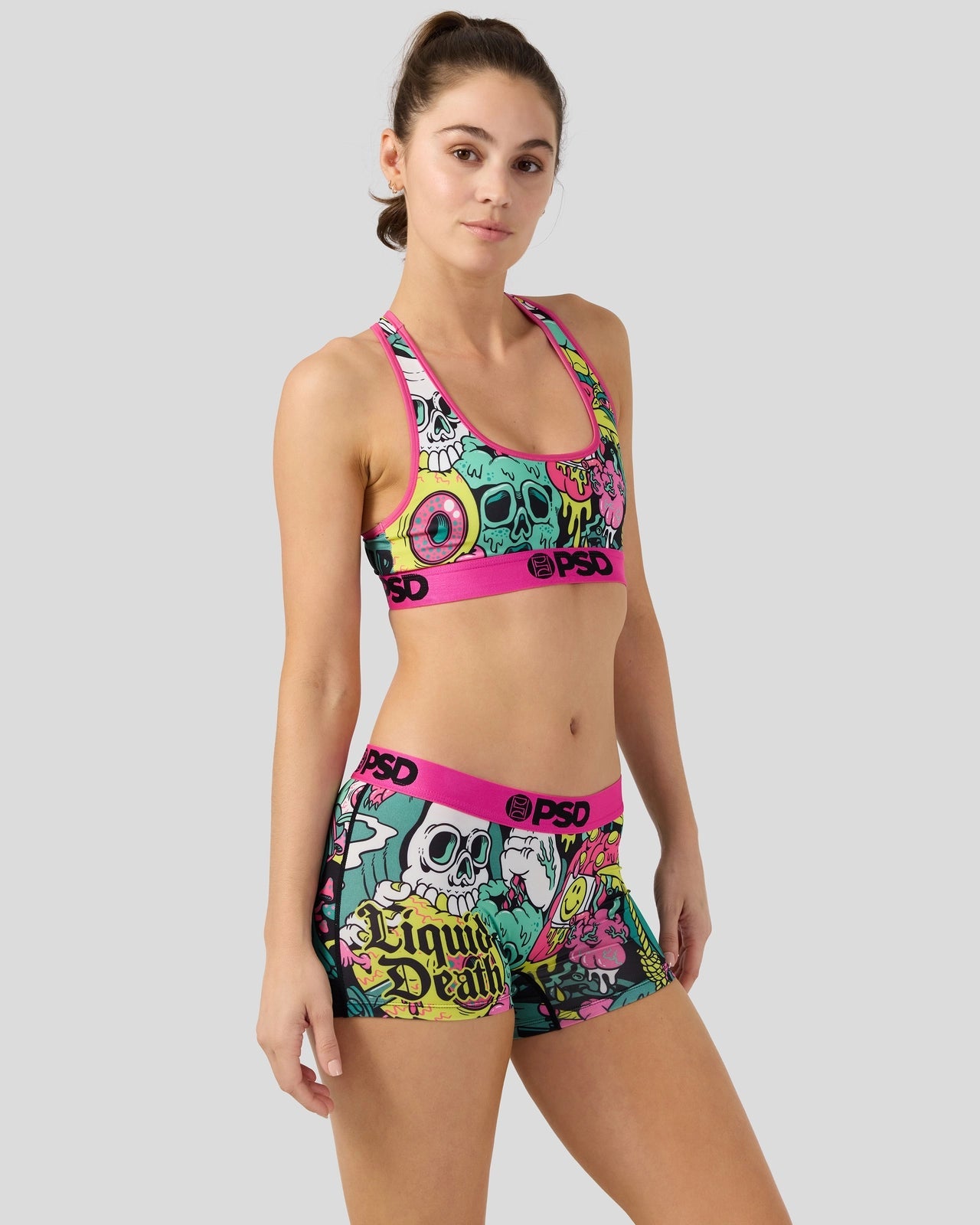 This new look from Liquid Death x PSD is here to murder your thirst for new bras. The Death Drip Sports Bra is made from a silky poly blend with a comfortable full coverage. keep-you-in fit.
