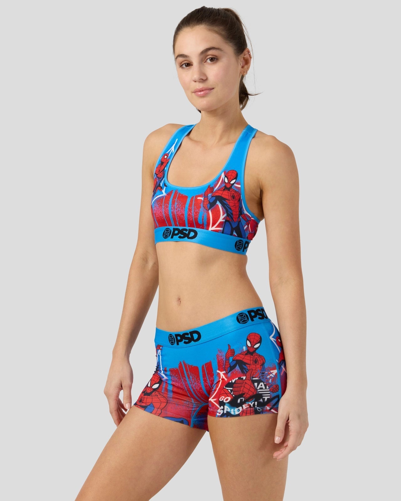 Our latest Spider-Man style just swung into town. The Peter Parker Sports Bra is made from a silky poly blend and is breathable yet slightly compressive. bringing you the comfort and support you need for everything you get into.