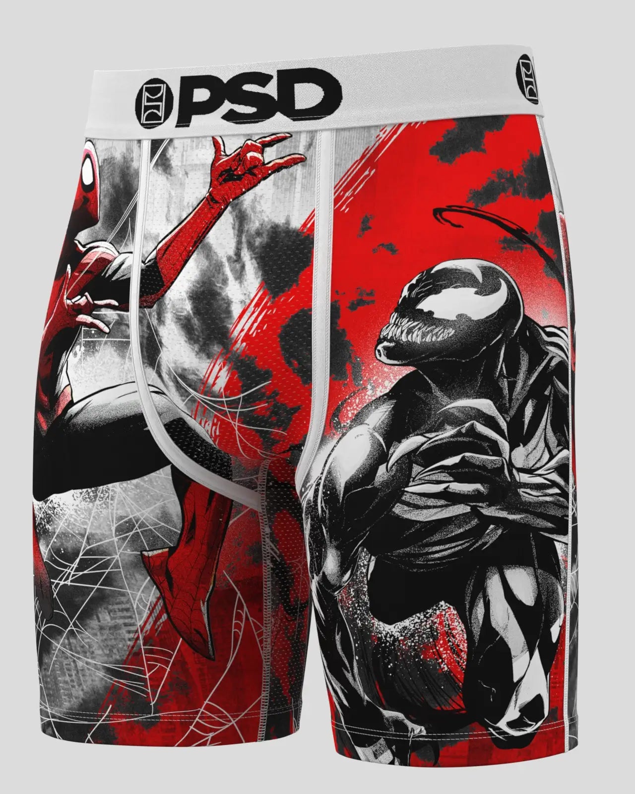 The rivalry returns with this new pair from Marvel featuring Spider-Man and Venom. The VS briefs include our ultra-comfortable Signature WaistBand. a breathable MicroMesh pouch. and four-way stretch. The PSD 7 Standard Length Briefs won’t roll or ride and were built for everything. from everyday wear to your toughest workouts.