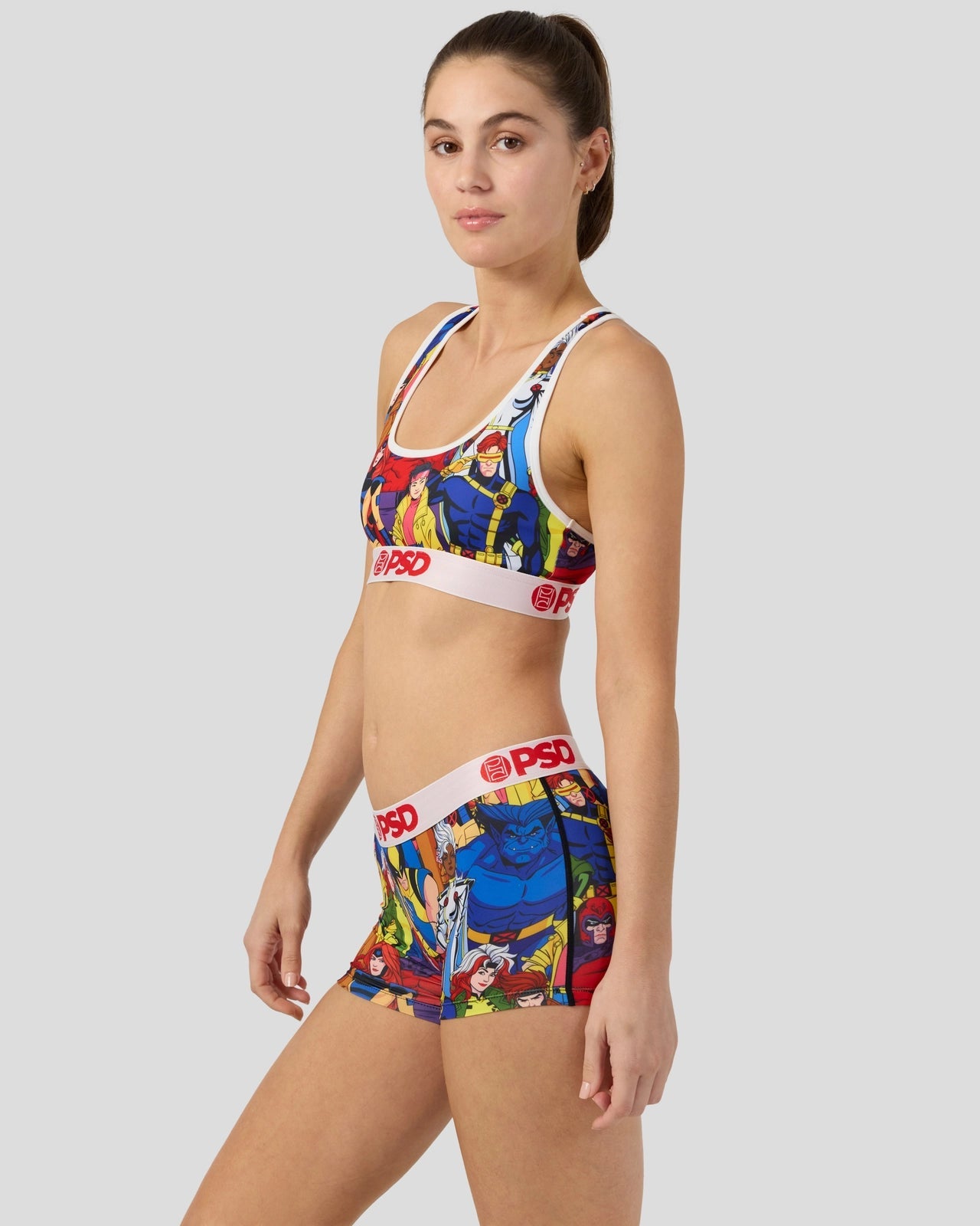 The Squad Boy Short features members of the X-Men assembled in an all-over print. Made of our silky poly blend with a comfortable full coverage. keep-you-in fit. the Boy Short is perfect for everyday wear and working out.