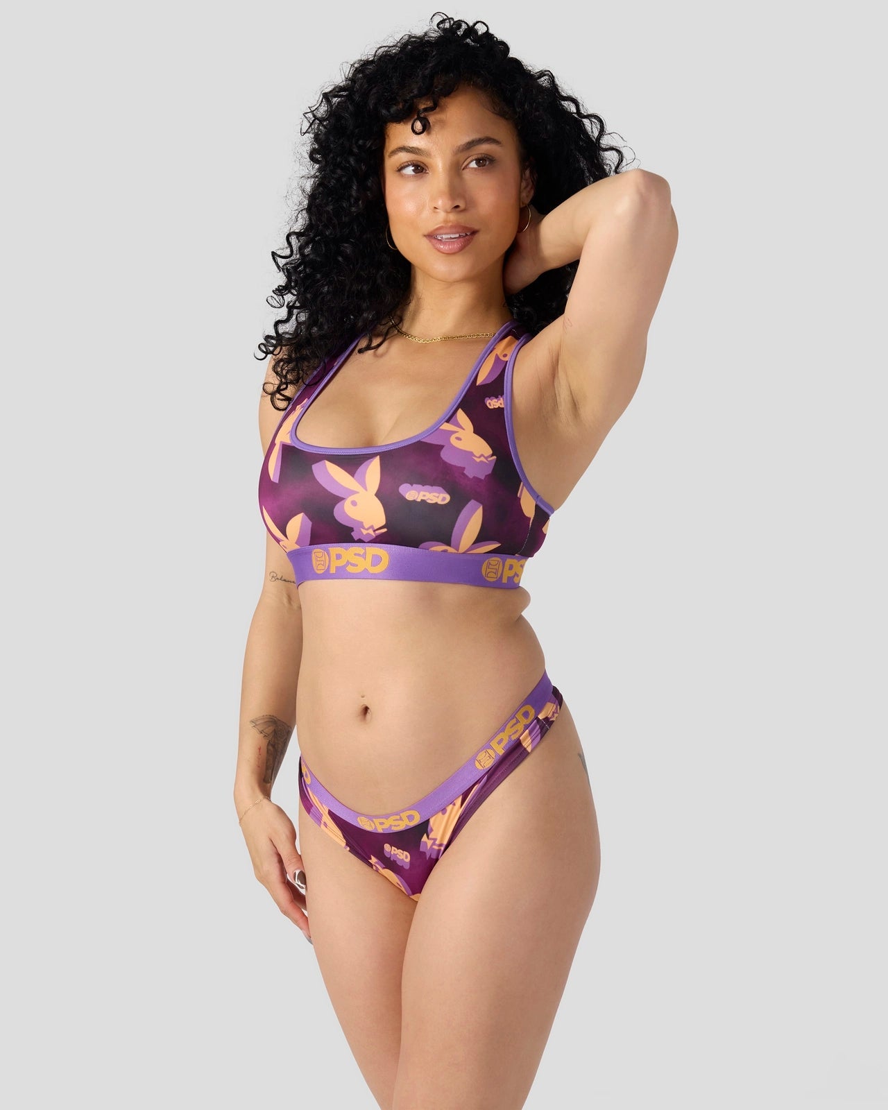 Our latest look from Playboy x PSD features their iconic logo with an eye-popping 3D effect. Made of our silky. soft-to-the-touch poly blend. the 3D Tumble Thong is lightweight and breathable with a classic thong silhouette.