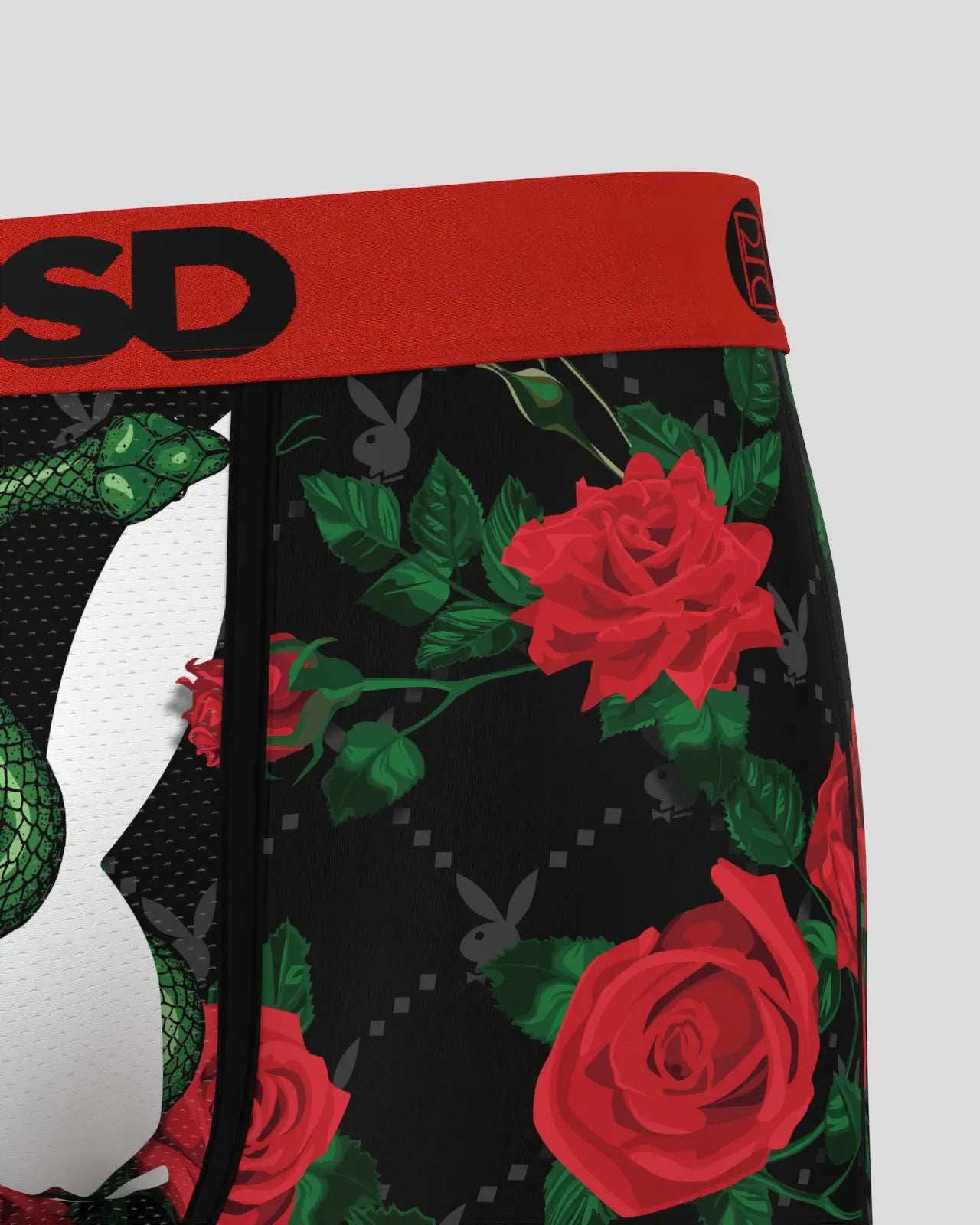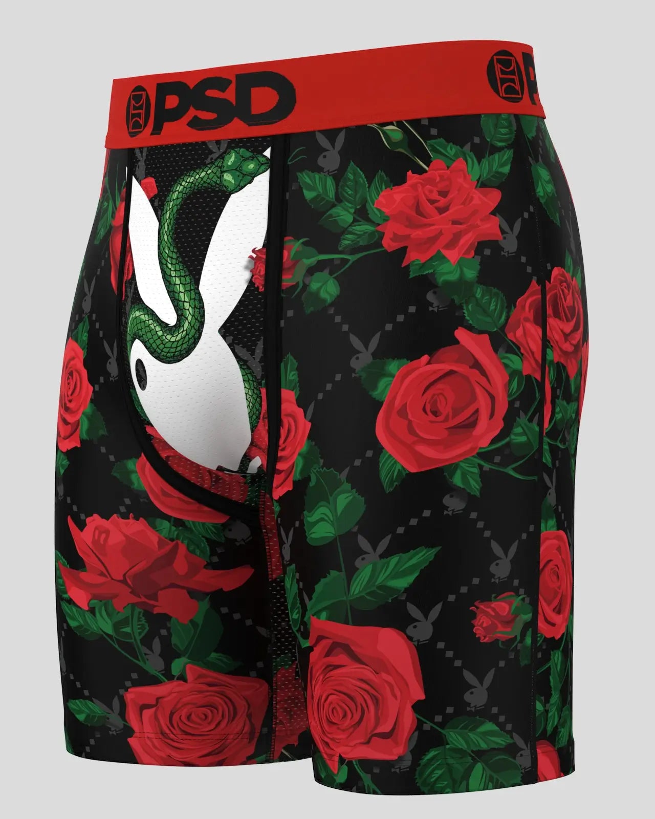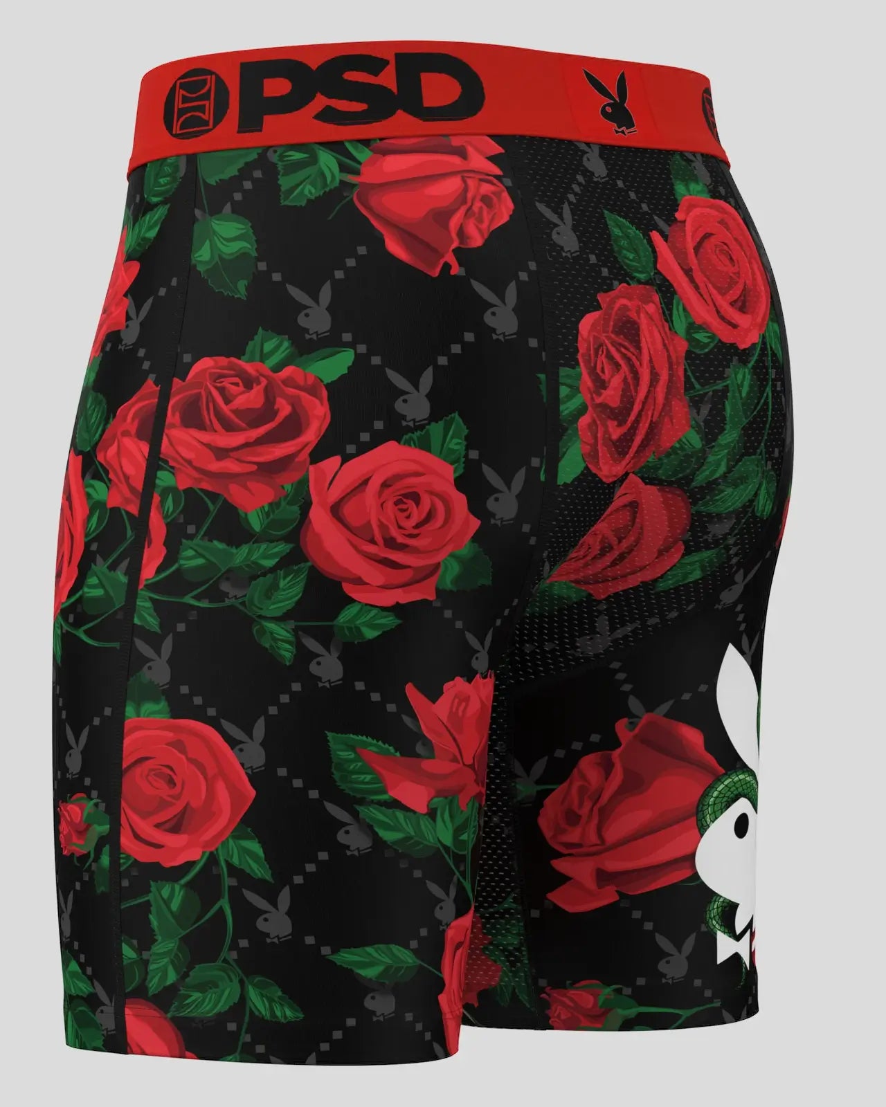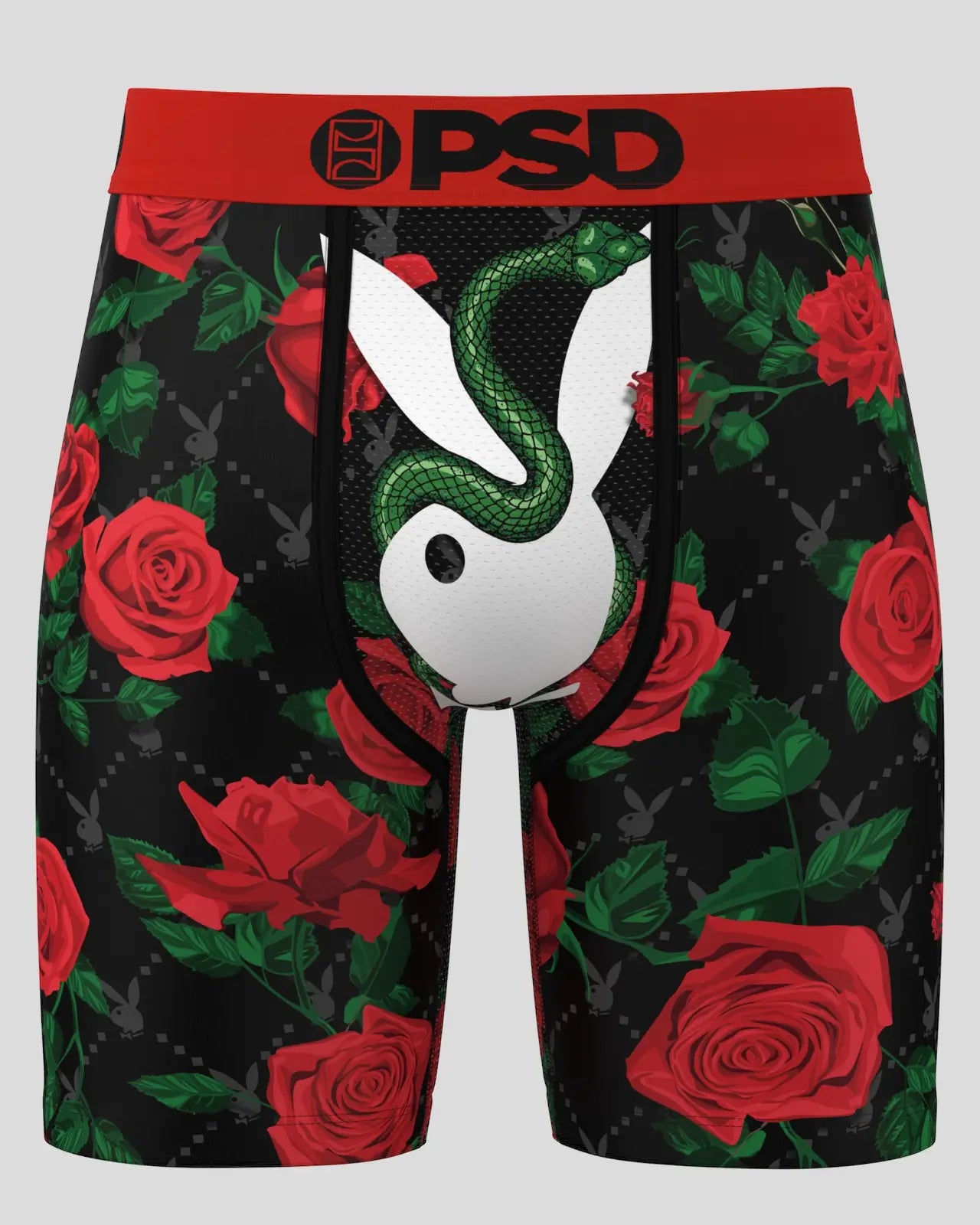 From Playboy x PSD. the Slither briefs feature a luxury-inspired and floral print and include our ultra-comfortable Signature WaistBand. a breathable MicroMesh pouch. and four-way stretch. The PSD 7 Standard Length Briefs won’t roll or ride and were built for everything. from everyday wear to your toughest workouts.