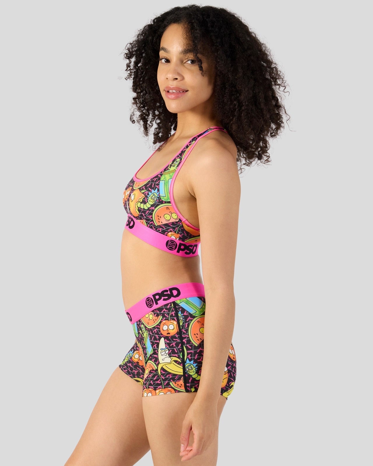 When it comes to Rick & Morty. you never know what they’ll get up to next. The Fruity Sports Bra is made from a silky poly blend and is breathable yet slightly compressive. bringing you the comfort and support you need for everything you get into.