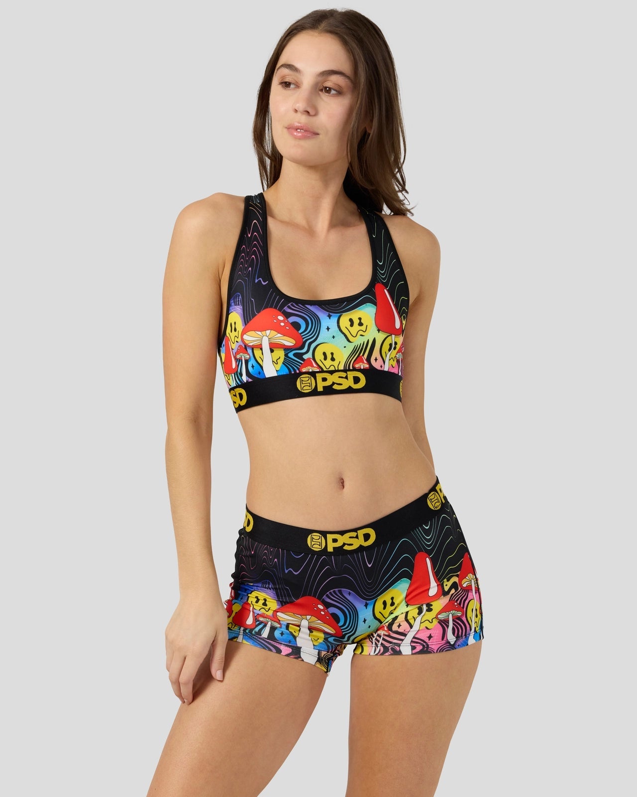 Take a trip in this new psychedelic print. The Shroom Melt Boy Short is made from a silky poly blend with a comfortable full coverage. keep-you-in fit. The PSD boy shorts are perfect for everyday wear and working out.
