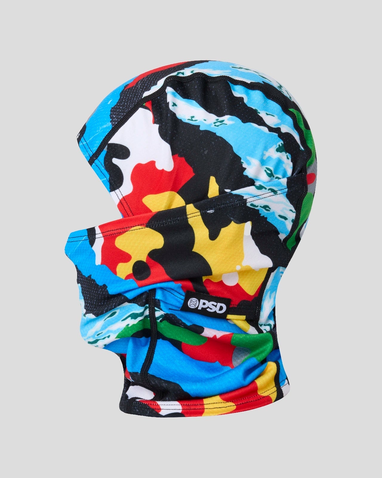 Featuring a colorful. mixed camo print. the Special Ops Hooded Mask pairs street style with cold-weather comfort. Made of a breathable poly blend brushed on the inside for an extra soft feel on the face. the mask has flat seams and can also be worn as a neck gaiter.