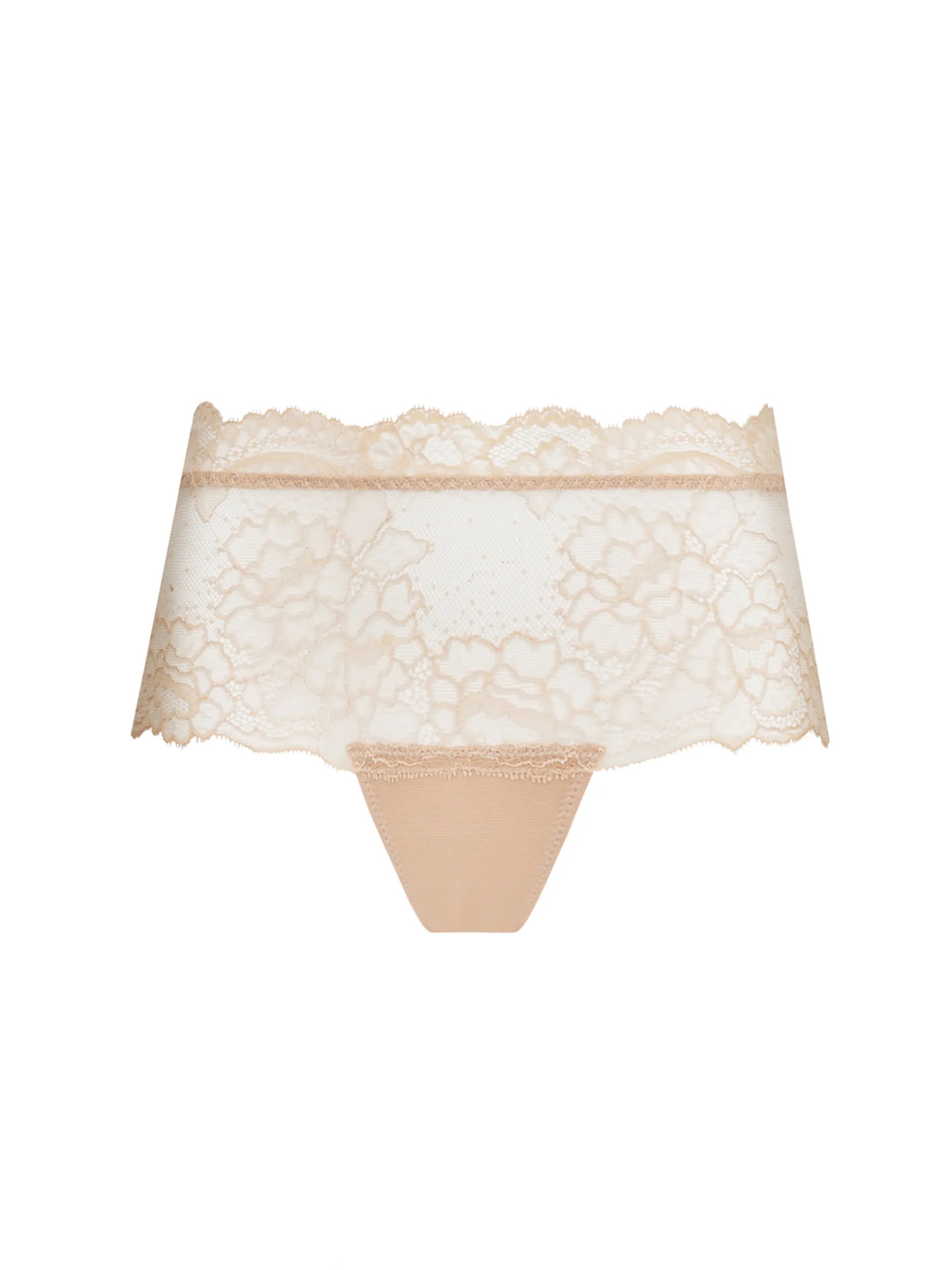Low-waisted briefs modelled on man’s boxer shorts with a feminine twist.